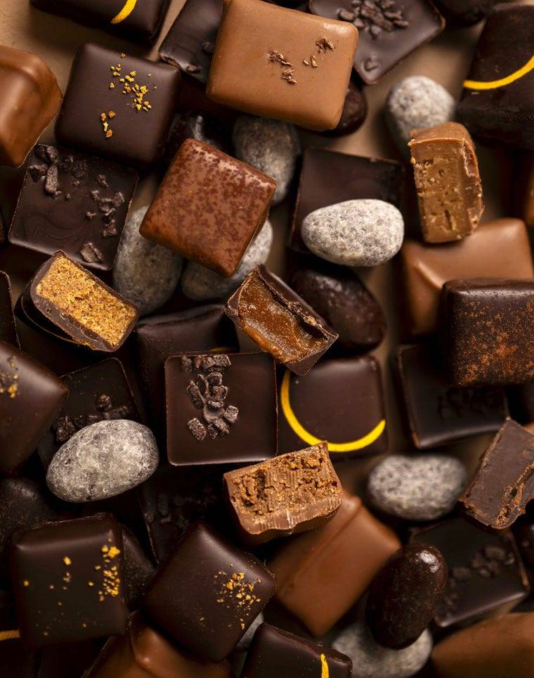 Inside, a delicious surprise awaits you : milk and praline chocolates, as well as dark chocolates filled with gianduja. Each bite is an explosion of flavours, combining the sweetness of milk, the crunchiness of praline and the creaminess of gianduja.